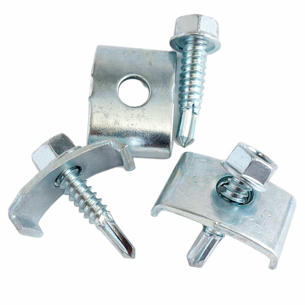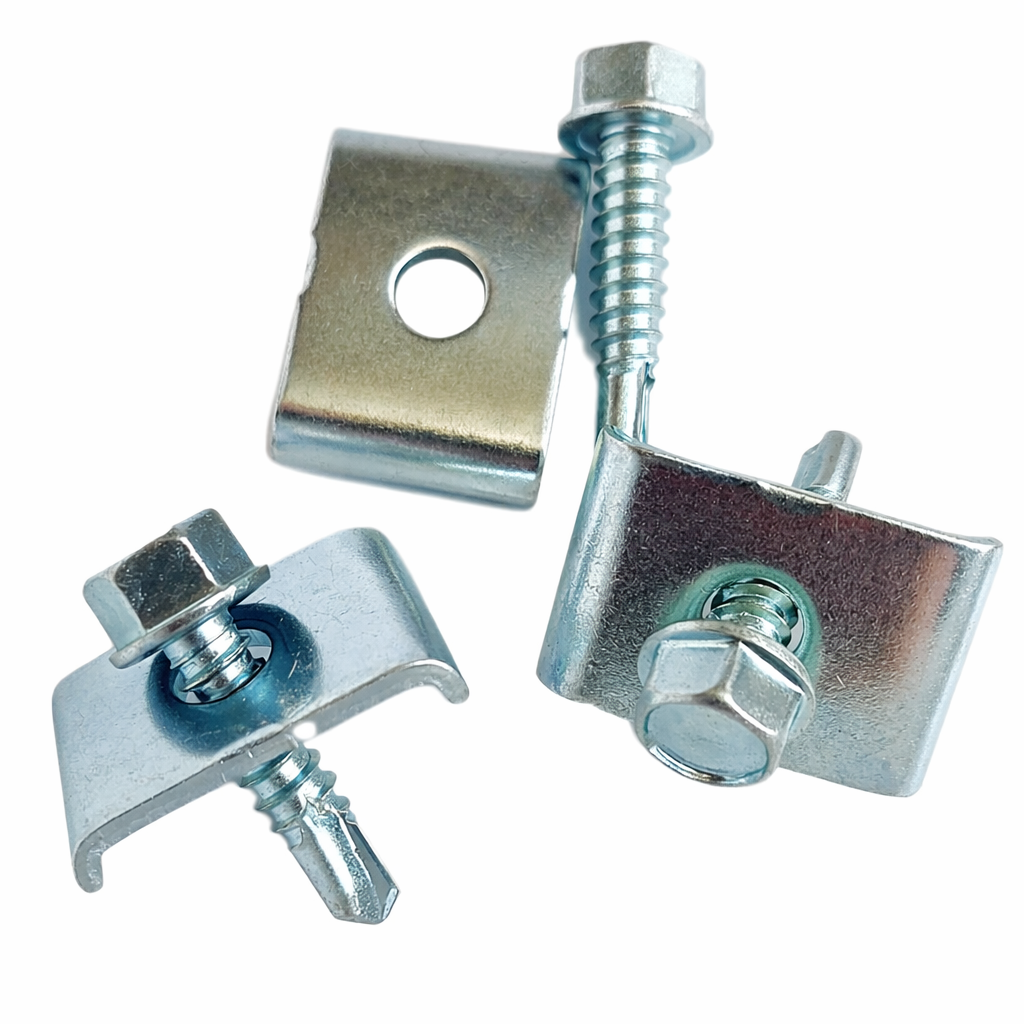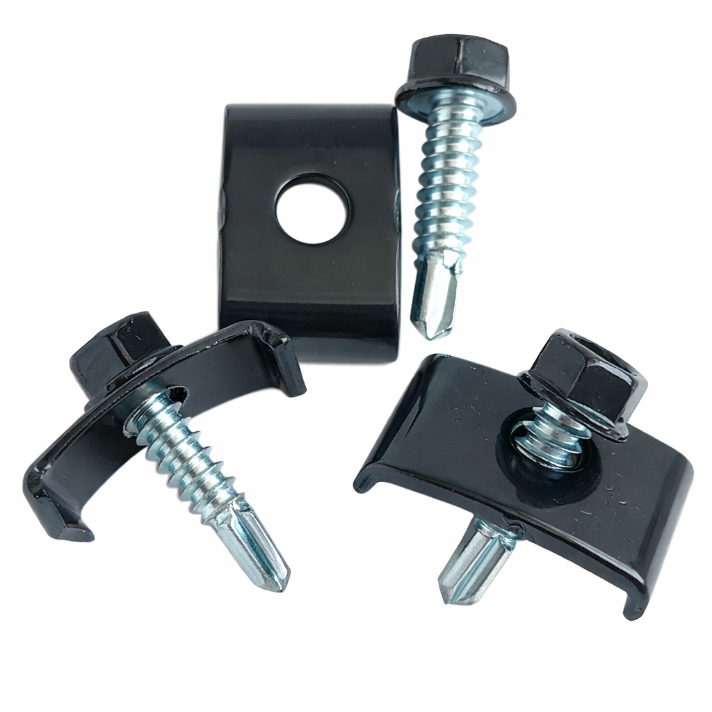 Șurubul autoforant permite găurirea și fixarea într-un timp foarte scurt pe stâlpii metalici.